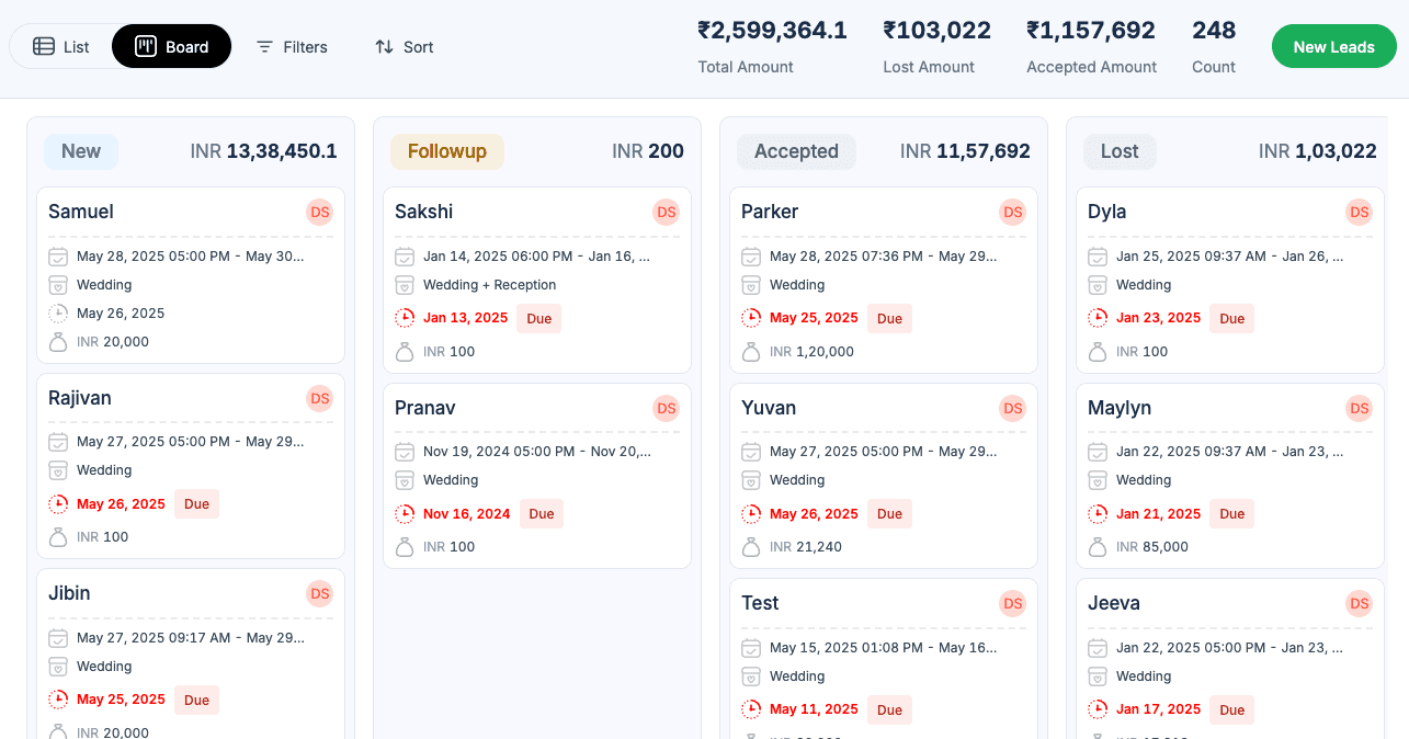 Generate premium quotation in few clicks. Manage Bills and payment tracking with all expense about the event and session managment.
